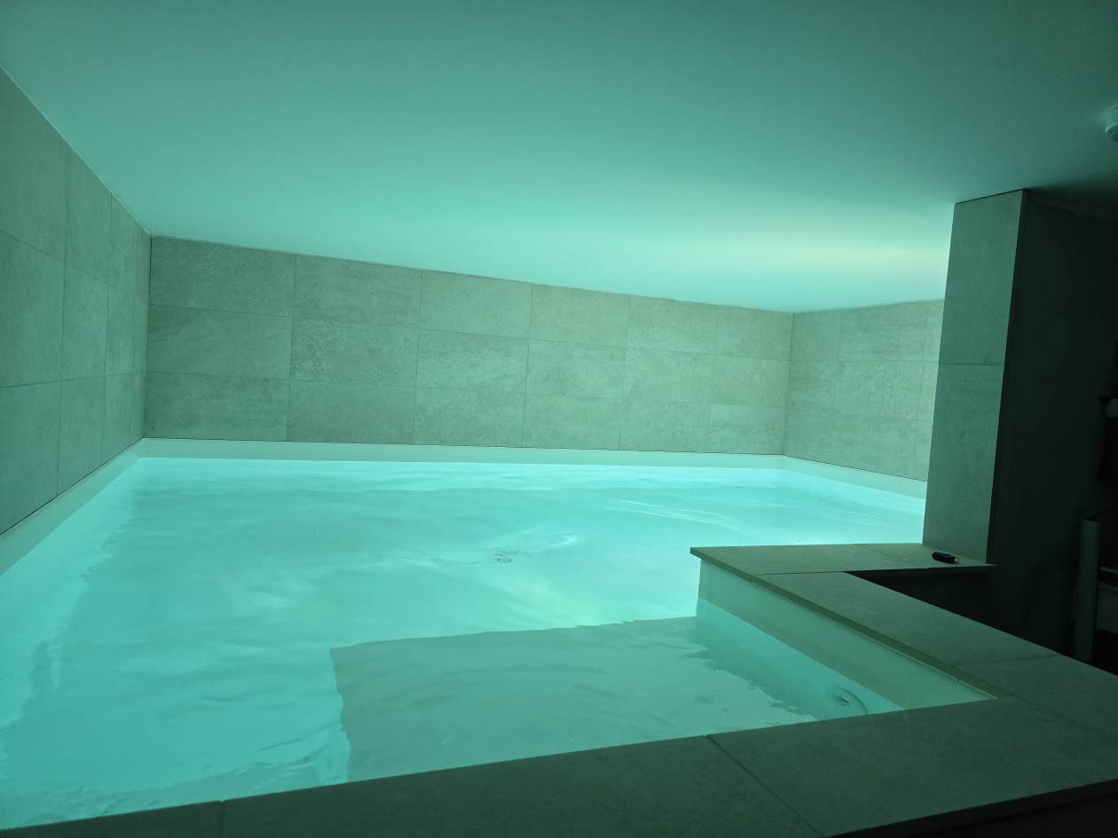 Piscine intérieure dans le sous-sol d’un chalet à La Clusaz, en conservant les 3 murs existants. Piscine chauffée, air déshumidifiée.