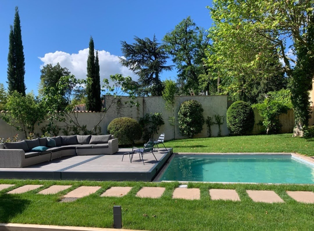 Création d’une piscine sur une demeure bourgeoise. Terrasse coulissante.