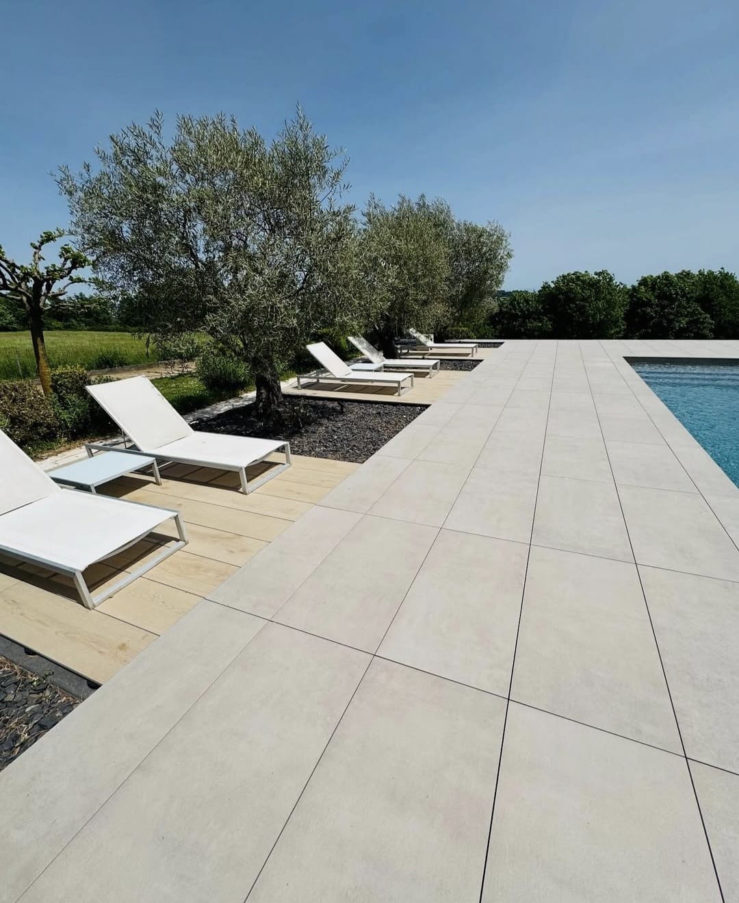 Rénovation de l’ensemble de la filtration et de toute la terrasse en carrelage Atlas Concorde.